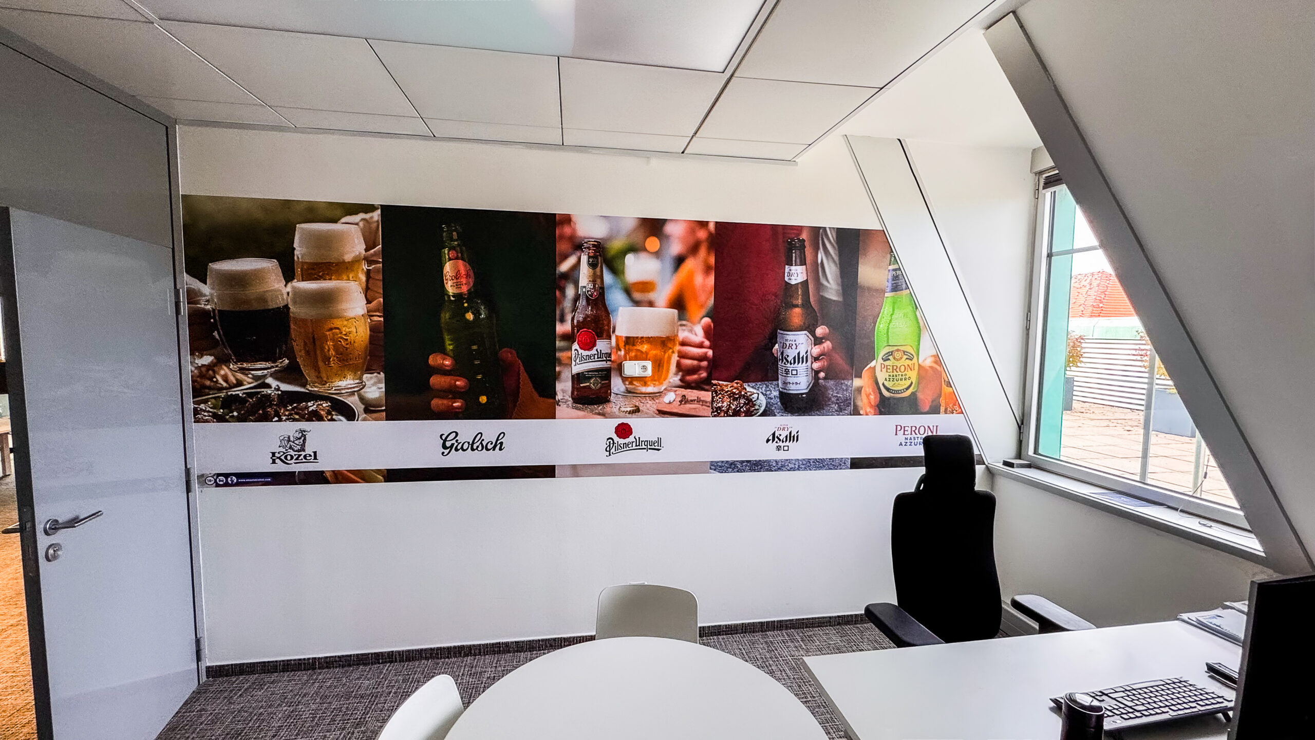 Navrhli a realizovali jsme grafické polepy do kancelářských prostor společnosti Asahi. Cílem bylo propojit firemní identitu s příjemnou atmosférou pracovního prostředí. Kombinace motivů značek Kozel, Grolsch, Pilsner Urquell, Asahi a Peroni s vizuály z kampaně Make the World Shine vytváří jednotný a pozitivní prostor, který odráží hodnoty i energii značky.